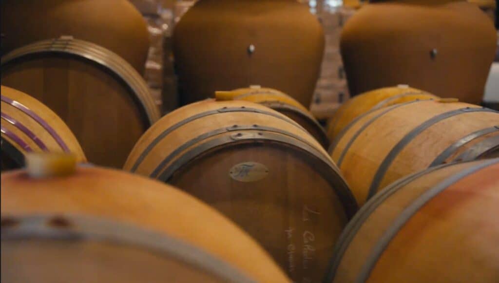 Ici, travail des sols est le plus léger possible : Ni désherbant, ni insecticide, le travail des chevaux réduit fortement l’utilisation du tracteur et son impact sur les sols. Les vendanges sont manuelles.