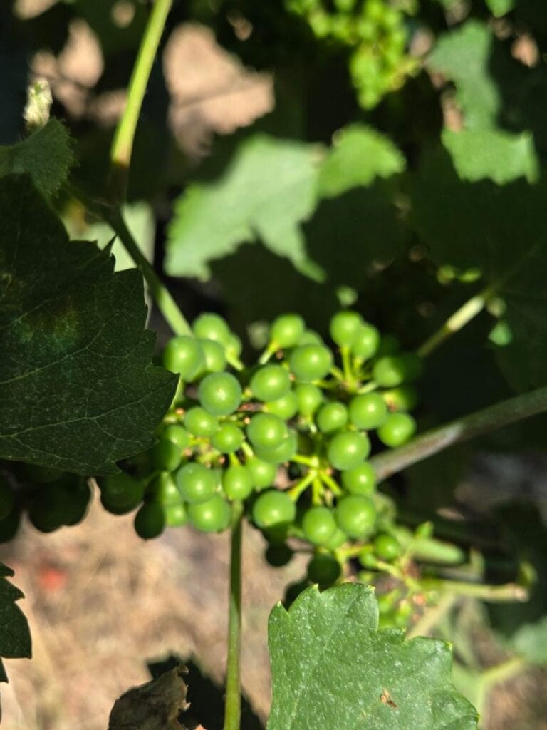 Louis-Antoine: ” C’est ce que l’on essaie d’expliquer (…) c’est vrai que ça peut surprendre du Pinot Noir par ici mais l’on réfléchis à des cépages plus résistants pour avoir une réponse concrète et éprouvée pour s’adapter aux changements climatiques. L’amplitude thermique la nuit à cette altitude est tout de même un peu plus forte que dans des zones plus basses (..) Y’a les vents du Nord avec régulièrement des rafales à plus de 70 km/h qui viennent soit sécher soit rafraîchir et sans oublier la pluviométrie qui est plus importante que dans la vallée. Cette année pour te donner un ordre d’idée en cumulé depuis le mois de janvier, on est à plus de 800 millimètres d’eau!”.