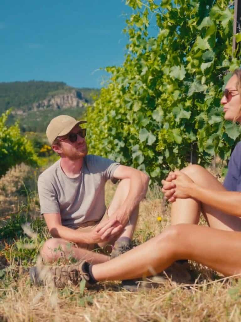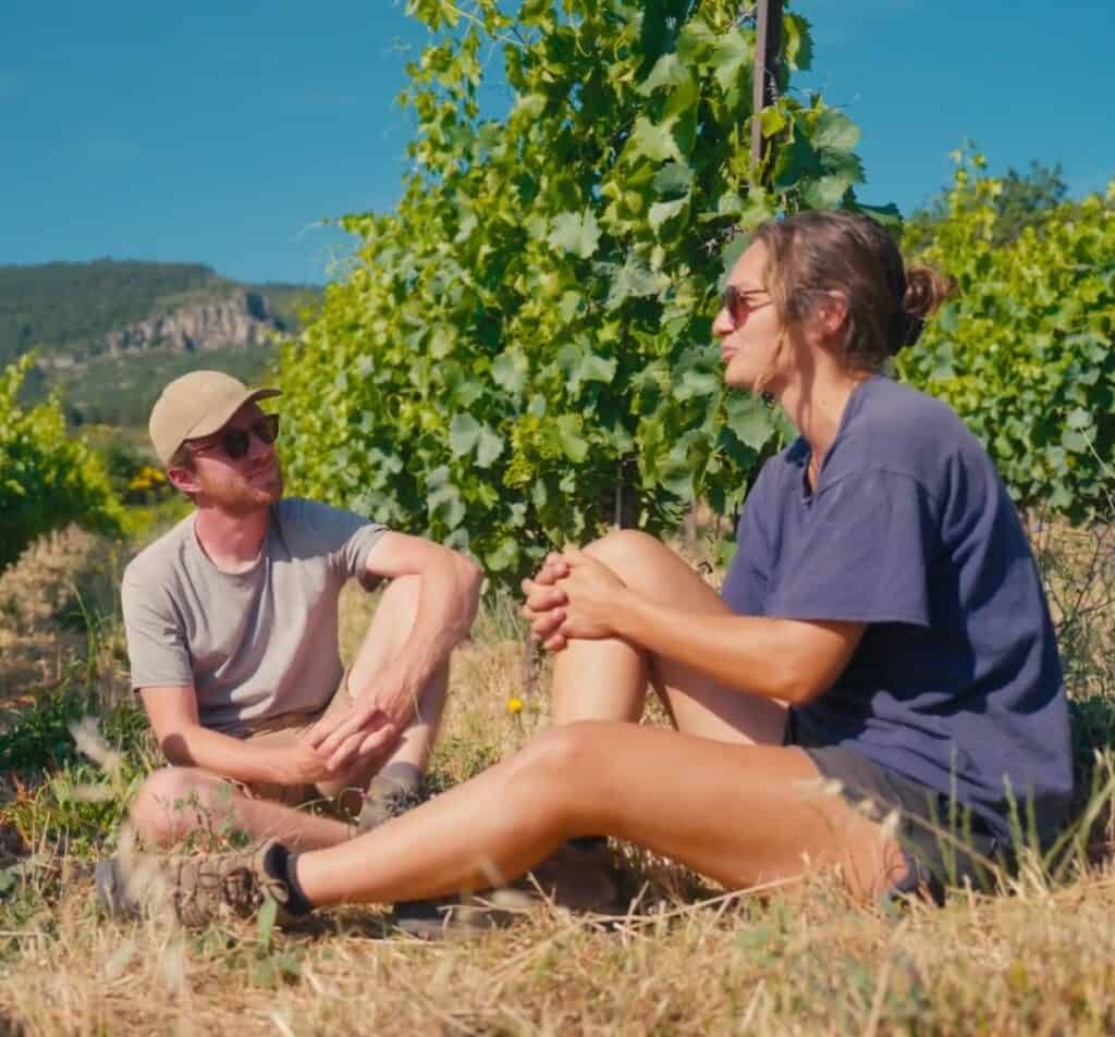 Je vous présente, Camille et Louis-Antoine, un jeune couple de vignerons installés en terrasses du Larzac.